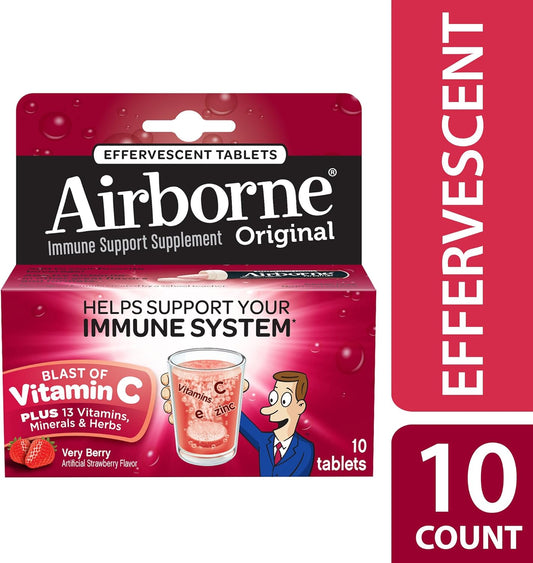 Airborne Very Berry Effervescent Tablets, 10 count - 1000mg of Vitamin C - Immune Support Supplement