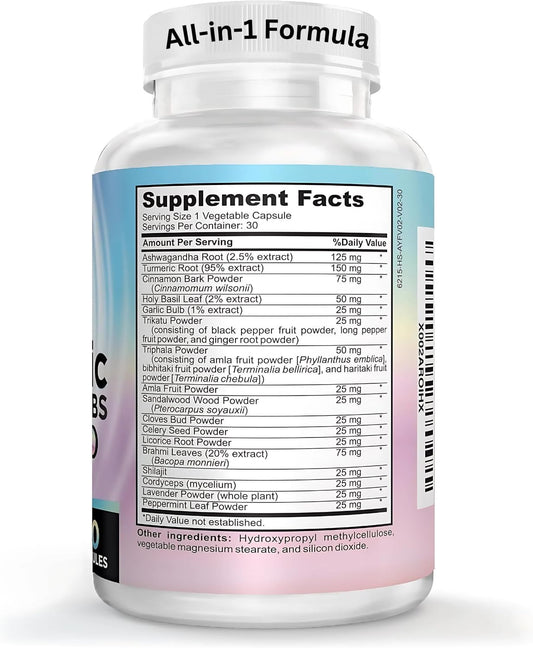 Ayurvedic Herbs (All-in-1) Supplement Blend - Ayurveda Mind Body Spirit Herbal Complex Pills with 17 Active Ingredients - Natural Ayurvedic Supplements | 30-Day Supply | 30 Capsules
