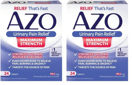 AZO Urinary Pain Relief Maximum Strength, FSA/HSA Eligible, Fast relief of UTI Pain, Burning & Urgency, Targets Source of Pain, #1 Most Trusted Brand, 24 Tablets