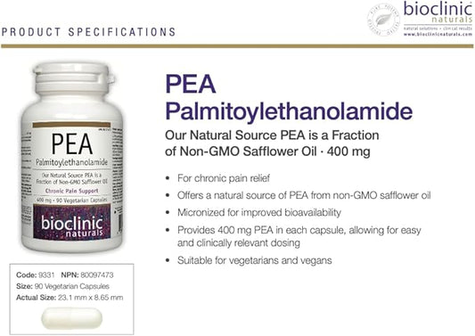 Bioclinic Naturals Pea Palmitoylethanolamide 400 mg,90 Vegetarian Capsules
