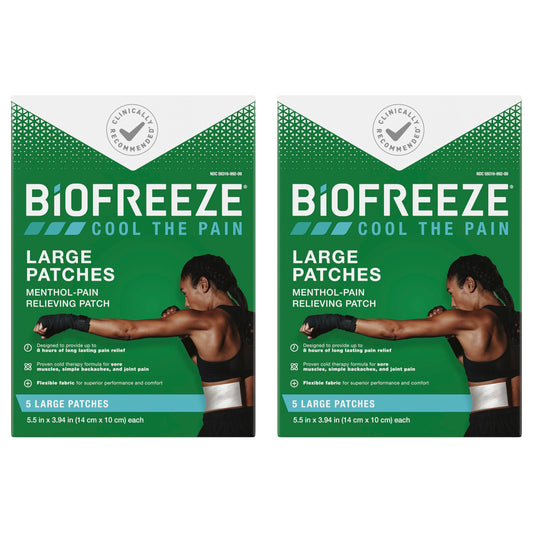 Biofreeze Large Pain Relief Patches, Menthol Pain Patches for Lower Back, Neck, Knee, & Shoulder, Comfortable & Flexible Fabric Stays in Place, FSA Eligible, 5 ct