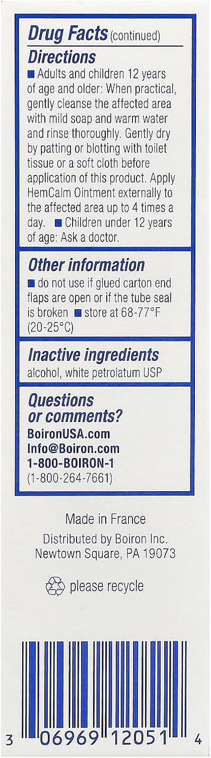 Boiron HemCalm Ointment for Hemorrhoid Relief of Pain, Itching, Swelling or Discomfort - 1 oz