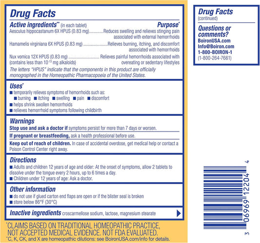 Boiron Hemcalm hemorrhoid Relief Tablets for Itchy Burning Pain, Swelling and discomfort, White, 60 Count