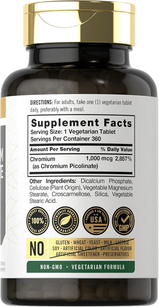Carlyle Ultra Chromium Picolinate 1000mcg | 360 Tablets | Vegetarian, Non-GMO, Gluten Free