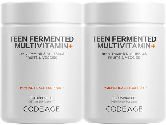 Codeage Teen Multivitamin Supplement – Daily Vitamins and Minerals for Teen Boys and Girls – Organic Whole Food Formula with Omega-3 and Vitamins A to K - 2 Pack