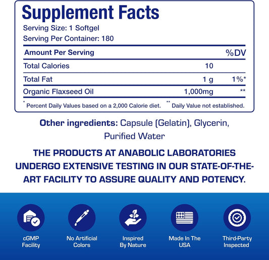 Cold Pressed Organic Flaxseed Oil 1000mg Softgels - Non GMO Organic Flax Seed Oil Rich in Naturally Occurring Omega 3 6 9 for Full Body Benefits - Fish Free Omega 3 Supplement (180 Softgels)
