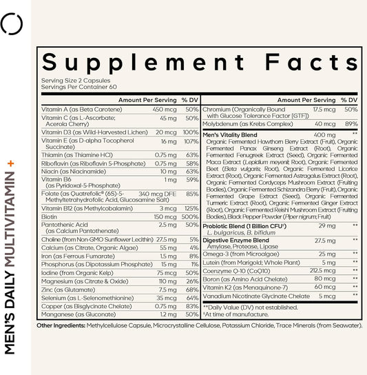 Codeage Men’s Daily Multivitamin – 25+ Essential Vitamins & Minerals, Organic Whole Foods, Probiotics, Omega-3, Zinc, Vitamins A, B, C, D, E & K – 120 Capsules
