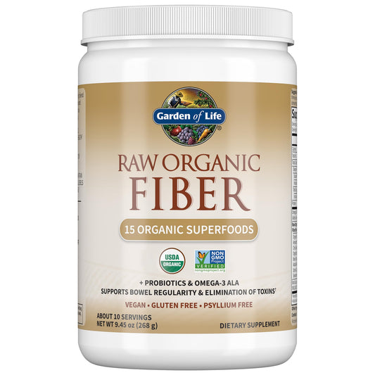 Garden of Life Raw Organic Fiber Powder, 30 Servings, 15 Organic Superfoods, Probiotics, Omega-3 ALA, Soluble and Insoluble Fiber for Regularity, Psyllium Husk Free