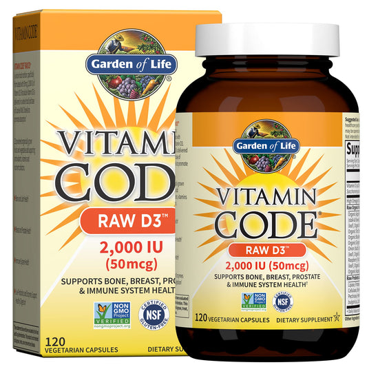 Garden of Life Vitamin D, Vitamin Code Raw D3, Vitamin D 2,000 IU, Raw Whole Food Vitamin D Supplements with Chlorella, Fruit, Veggies & Probiotics for Bone & Immune Health, 60 Vegetarian Capsules