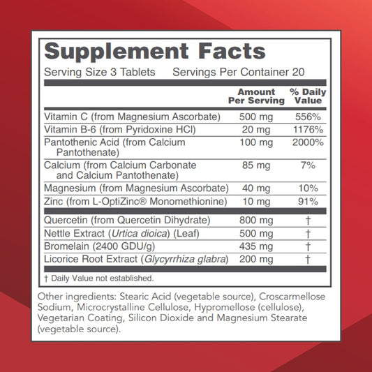 Protocol Aller-All Tablets - Immune System Support* - with Vitamin C, Zinc, Quercetin, Calcium & Bromelain - Kosher & Dairy Free - 60 Tabs