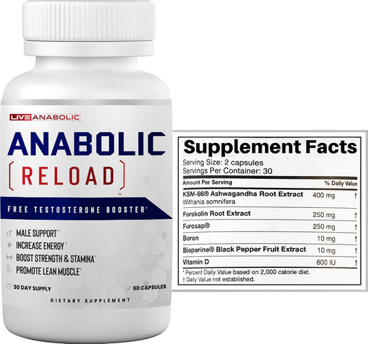 LiveAnabolic - Anabolic Reload - Vitamin D Source - 60 Capsules, 30-Day Supply - Helps Improve Energy Levels, Strength, and Stamina - Supports Lean Muscle Development - with Ashwagandha and Forskolin