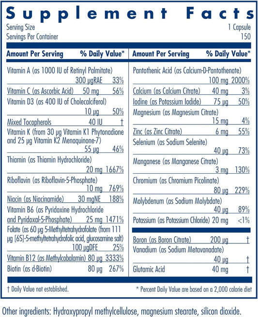 Allergy Research Group Multi-Vi-Min Supplement - Multivitamin for Men & Women, with Iron, Daily Vitamins, for Adults, High Potency, Bioavailable, Vegetarian Capsules - 150 Count