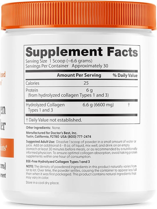 Doctor's Best Pure Collagen Types 1 & 3, Promotes Healthy Skin Hair & Nails – Bone & Joint Support, 7.1 Ounce