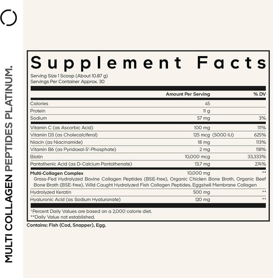 Codeage Multi Collagen for Women & Men Biotin 10000mcg Keratin, Protein Powder Vitamin C B6 D3, Hyaluronic Acid, Niacin - Hydrolyzed Collagen Coffee Creamer 5 Types - Unflavored - Non-GMO - 11.5oz