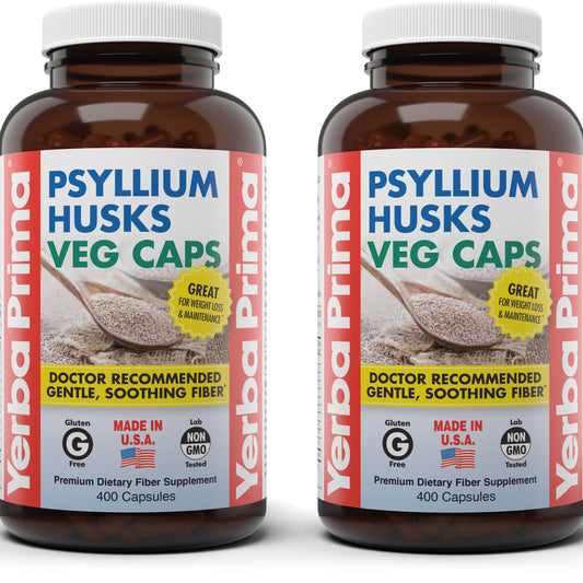 Yerba Prima Psyllium Husks Veg Caps, 400 Capsules (625mg) - Vegan, Non-GMO, Gluten Free, Colon Cleanser, Daily Fiber Supplement for Gut Health & Regularity