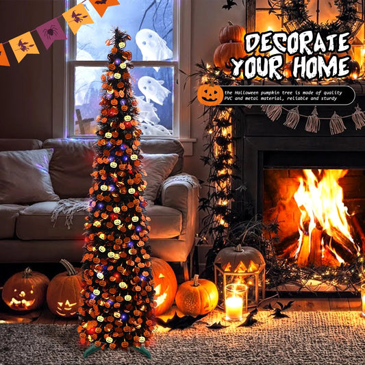 Ayieyill 5ft Halloween Tree Prelit, Pencil Pop up Tree with Light outdoor christmas decorating Decoration | Indoor | Black