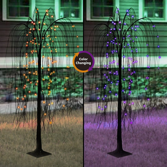 Orange and Purple Willow Tree, 48in, Color Changing LEDs, 8-Function Battery-Operated