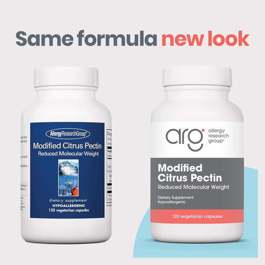 Allergy Research Group Modified Citrus Pectin - Dietary Supplement for Natural Detox and Cleanse, Citrus Pectin Powder Capsules with Reduced Molecular Weight - 120 Vegetarian Capsules