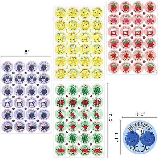 Scratch & Sniff Stickers for Kids – 864 Smelly Reward Stickers, 12 Scents, Fruits & Food Themes