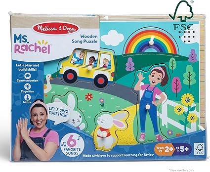 Melissa & Doug Ms. Rachel Wooden Song Peg Puzzle – Light-Activated Musical Toy for Toddlers (Ages 2-5)