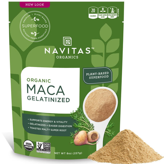 Navitas Organics Maca Powder – 100% Gelatinized Peruvian Maca for Adaptogen Smoothies, Lattes, Baking & More – Energize & Balance - USDA Organic, Non GMO, Vegan, Gluten Free (4oz. Bag, 23 Servings)