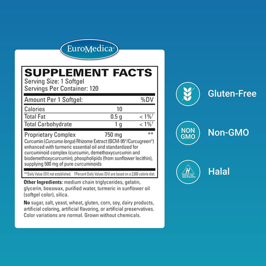 Euromedica CuraPro - Antioxidant Supplement for Brain & Heart Health Support - Dietary Supplement with High-Potency Curcumin Complex - Kidney, Liver & Immune Health Support - 120 Softgels
