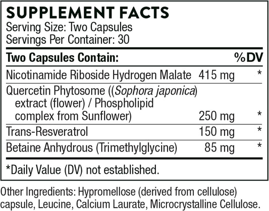 THORNE ResveraCel - Nicotinamide Riboside with Quercetin Phytosome and Resveratrol - Support Healthy Aging, Methylation, Cellular Energy Production and Metabolism* - 60 Capsules - 30 Servings
