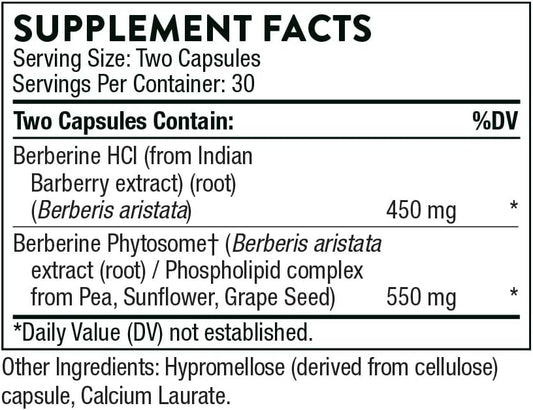 THORNE Berberine - Dual Action Formula with Phytosome Plus Botanical Extract - Support Heart Health, Immune System, Healthy GI, Cholesterol* - Gluten-Free, Dairy-Free - 60 Capsules - 30 Servings