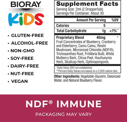 BIORAY Kids NDF Immune, Blueberry - 2 fl oz - Immune Support & Toxin Remover - Non-GMO, Vegan, Gluten Free - Approx. 30 Servings