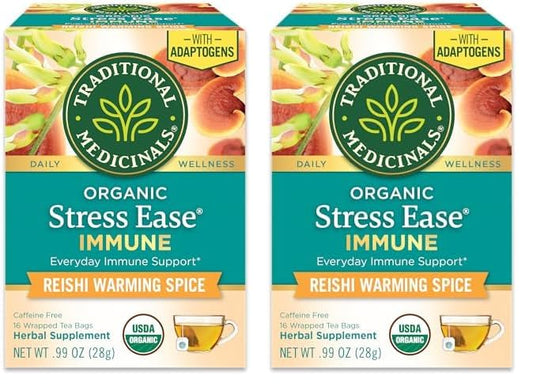 Traditional Medicinals Tea, Organic Stress Ease Immune with Adaptogens, Everyday Immune Support, Reishi Warming Spice, 16 Tea Bags