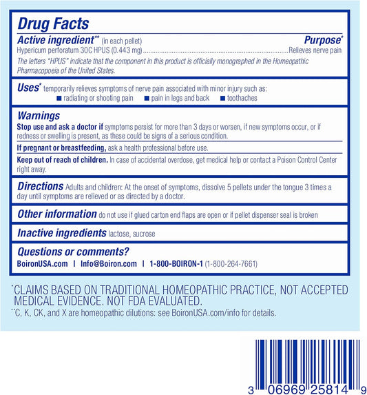 Boiron Hypericum Perforatum 30C Homeopathic Medicine for Relief from Nerve Pain, Toothaches, Pain in Legs or Back, and Shooting Pains - 3 Count (240 Pellets)