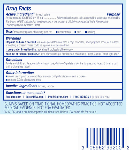 Boiron Arnica Bruise - Arnica Montana 30c for Relief of Pain, Swelling, and Discoloration from Bruises - 3 Count (240 Pellets)