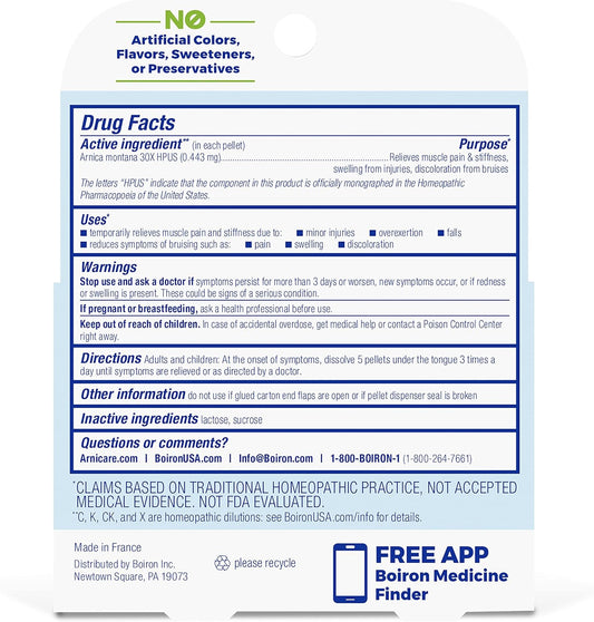 Boiron Arnica Montana 30X Homeopathic Medicine for Relief from Muscle Pain, Muscle Stiffness, Swelling from Injury, and Discoloration from Bruises - 3 Count (240 Pellets)