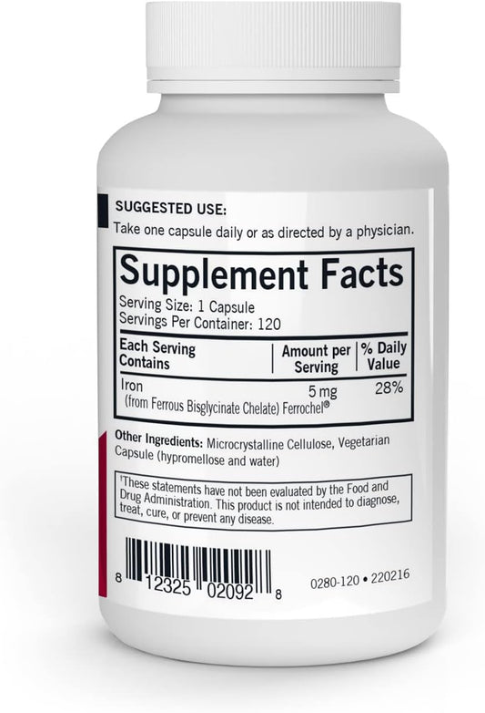 Kirkman - Iron Ferrochel 5mg - 120 Capsules - Aids Hemoglobin & Myoglobin Production - Supports Red Blood Cells Formation - Hypoallergenic