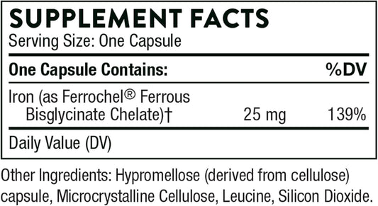 THORNE Iron Bisglycinate - 25 mg Iron Supplement for Enhanced Absorption Without Gastrointestinal Side Effects* - NSF Certified for Sport - Gluten-Free - 60 Capsules