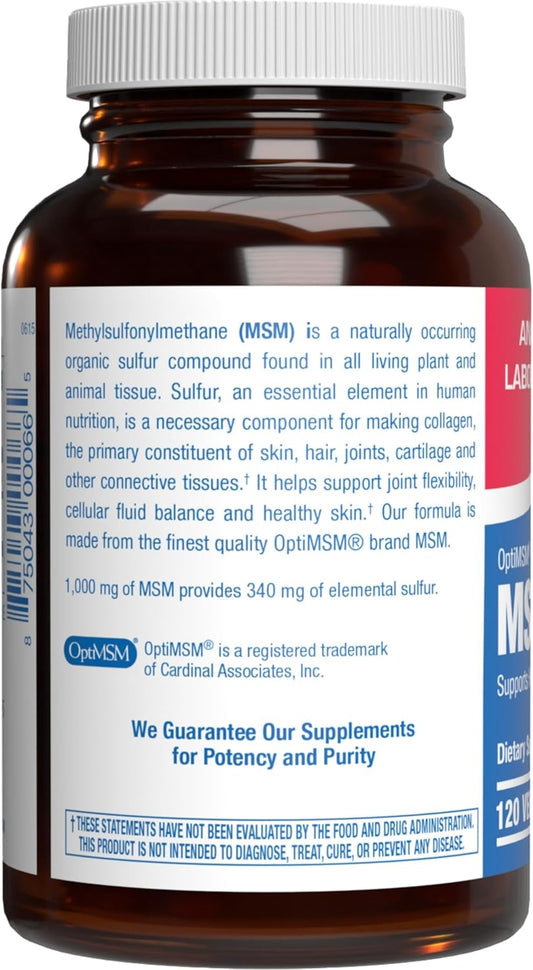 Methylsulfonylmethane MSM Supplement 1000mg - High Strength Soft Tissue & Joint Support Supplement with MSM from OptiMSM - Vegetarian Non-GMO & Made in the USA in cGMP Facilities - 60 Servings