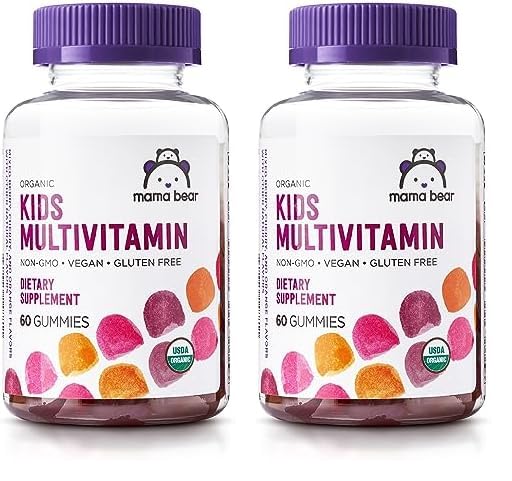 Mama Bear Organic Kids Multivitamin, 60 Gummies, 1 Month Supply (Packaging May Vary), Berry, Cherry & Orange