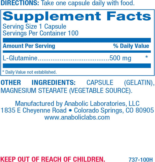 Free Form L-Glutamine Supplement - Clinical L Glutamine Capsules 500mg for Gut Health and Immune Support - Powerful Amino Acid Glutathione Precursor - Non-GMO & Made in The USA - 100 Servings