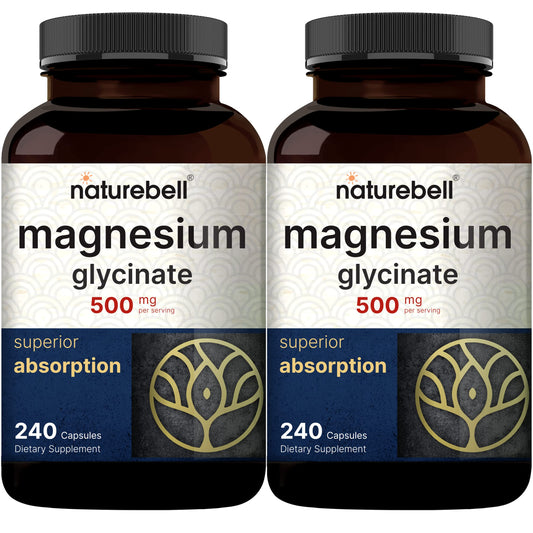 NatureBell Magnesium Glycinate 500mg, 240 Capsules | 100% Chelated & Purified | Sleep, Muscle & Heart Support | 3rd Party Tested, Non-GMO, Gluten-Free