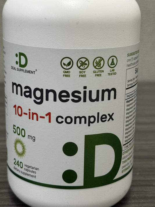 Magnesium Complex 500mg, 240 Veggie Capsules | 10-in-1 Glycinate, Citrate, Malate, & More | 100% Chelated for Easy Absorption | Essential Mineral Supplement for Muscle, Sleep, & Heart Health