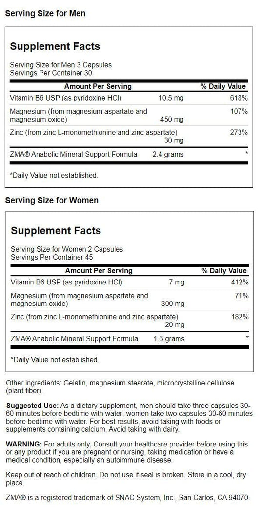 Swanson ZMA - Energy, Metabolism, and Muscle Recovery Support for Men and Women - Anabolic Mineral Support for Athletes Combining Zinc and Magnesium with Vitamin B6 - (90 Capsules, 800mg Each) 3 Pack