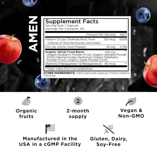 Amen Vitamin D, K2 & Zinc, Cholecalciferol D3 5000 IU