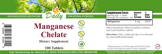 Daily Manufacturing Manganese Chelate (5 mg) 100 Tablets