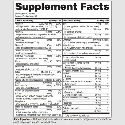 PureFormulas PureMulti for Men - Daily Comprehensive Multivitamin for Men's Health, Vitality, Energy, Focus, & Performance. Mens Vitamins A, C, D, E, & B12, Zinc Calcium, Magnesium & More 60 Capsules