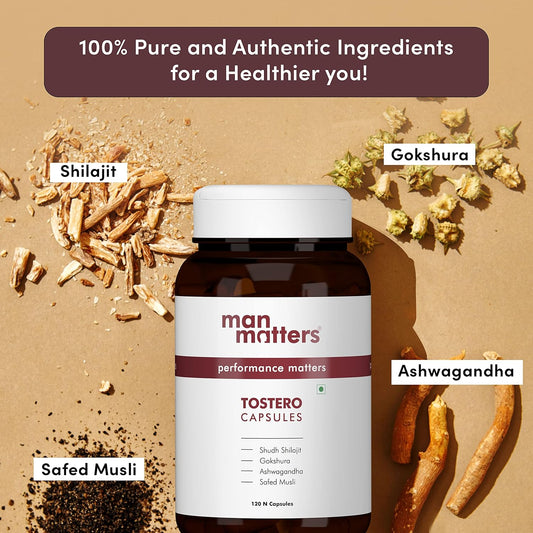Pure Shilajit, Gokshura, Kesar, Ashwagandha, Safed Musli Capsules for Men | 20 Natural Herbs | 180 Tablets