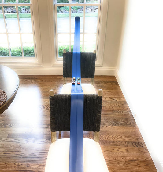 FlexTrack 5000 Flexible Race Car Track for Kids Toy with Suction Cups Compatible with Hot Wheels and Diecast 1/64th Cars and More 15 Feet Long Rolls Up Portable Racetrack (Racing Blue)