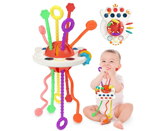 Yetonamr Baby Sensory Montessori Toys for 6-12-18 Months, Pull String Silicone Teething Toy, Toddler Birthday Gift Travel Toy for 1 2 Year Old Boy Girl Infant 8 9 10 Months Old
