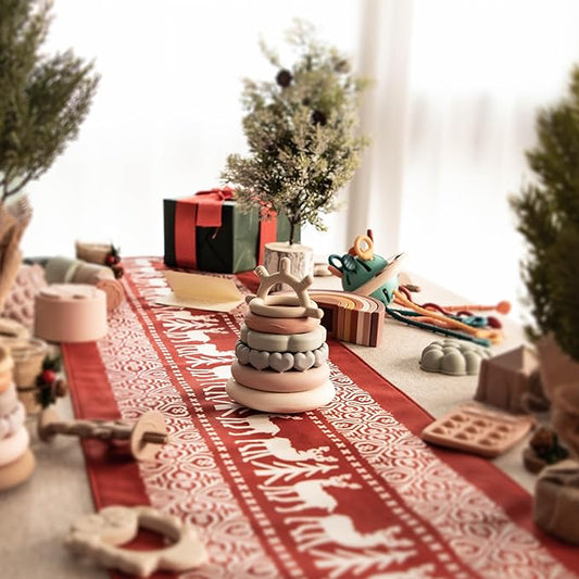 Moonkie Stacks of Circles Soft Teething Toy | Educational Learning Baby Toy | Stacking Ring Toys for Babies Boy and Girl | 7 Piece Teethers Set