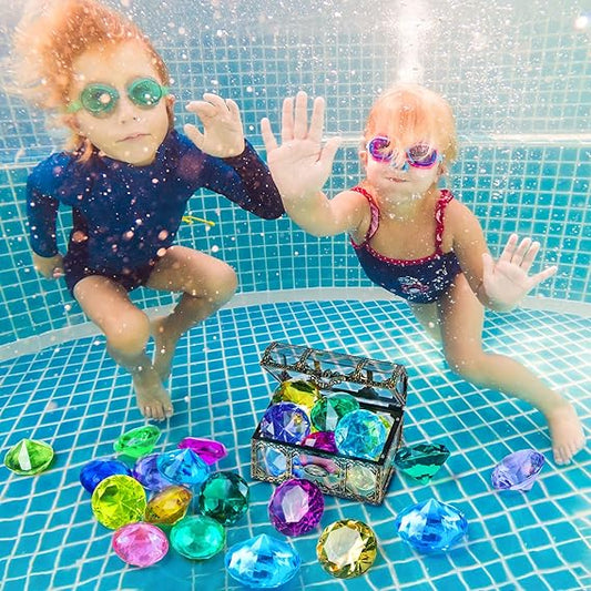 Diving Gem Pool Toy 10PCS DISHIO Big Colorful Diamond Diving Toy with Treasure Box Chest Pirate Pool Toys for Kids Toddlers Underwater Sinking Dive Gemstone for Swimming Bath Birthday Party Decoration