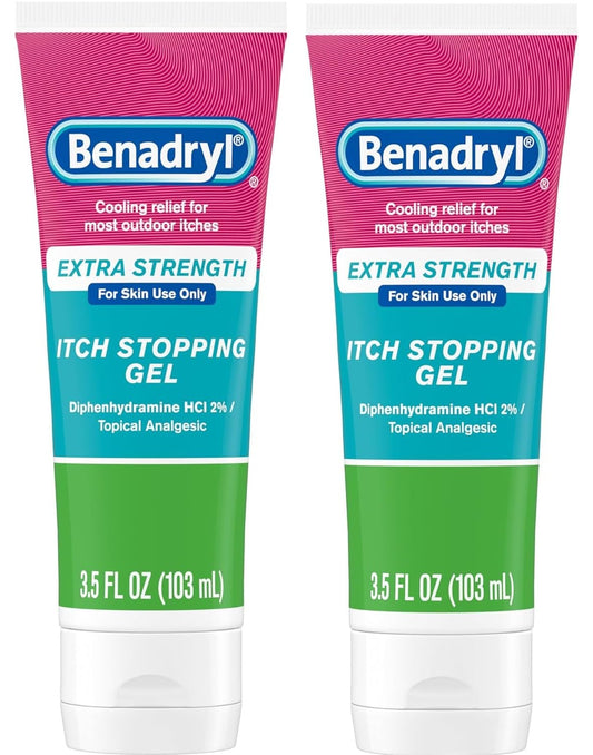 Benadryl Extra Strength Anti Itch Relief Gel, 2% Diphenhydramine HCl, Relief from Insect Bites, Sunburn & More, Great for Camping Essentials, 3.5 fl oz